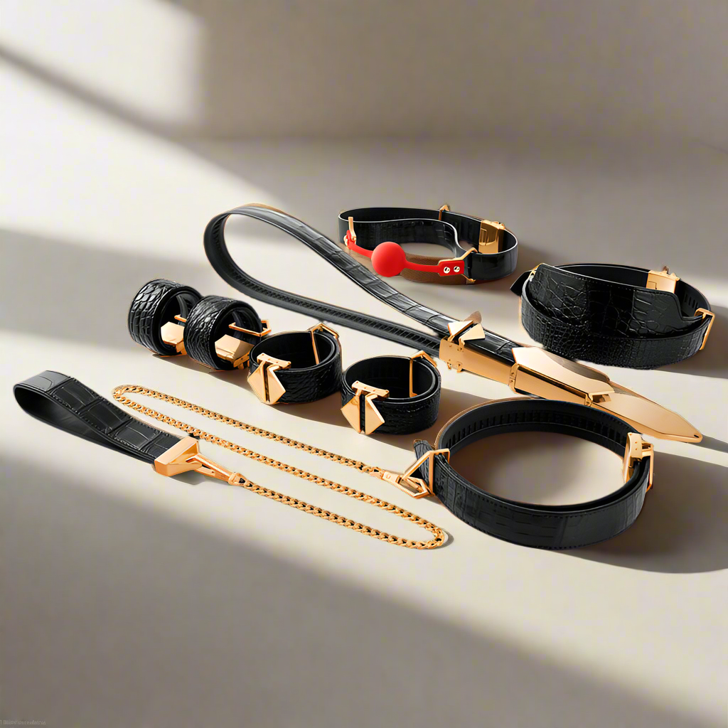 The polished gold-tone hardware and sturdy D-rings ensure durability while adding a touch of opulence to your play.